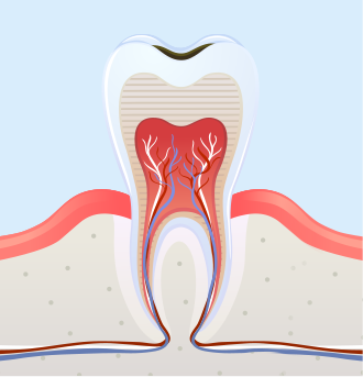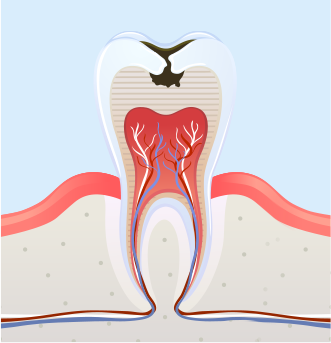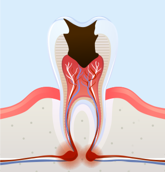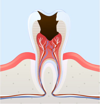 신경과 혈관이 분포된 치수까지 진행, 심한 통증이 발생하며 신경치료 필요